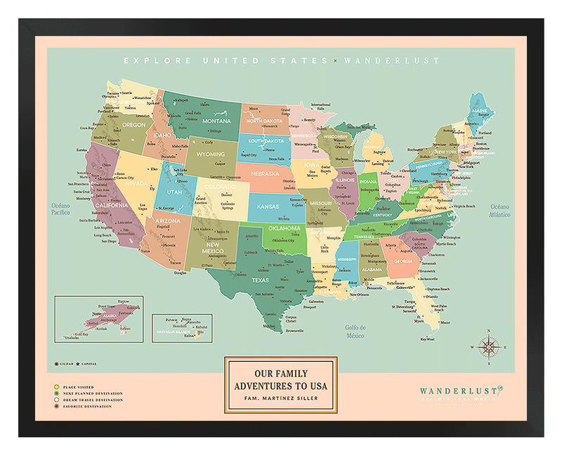 Amazon.com: Mapa de estados y capitales de Estados Unidos (36